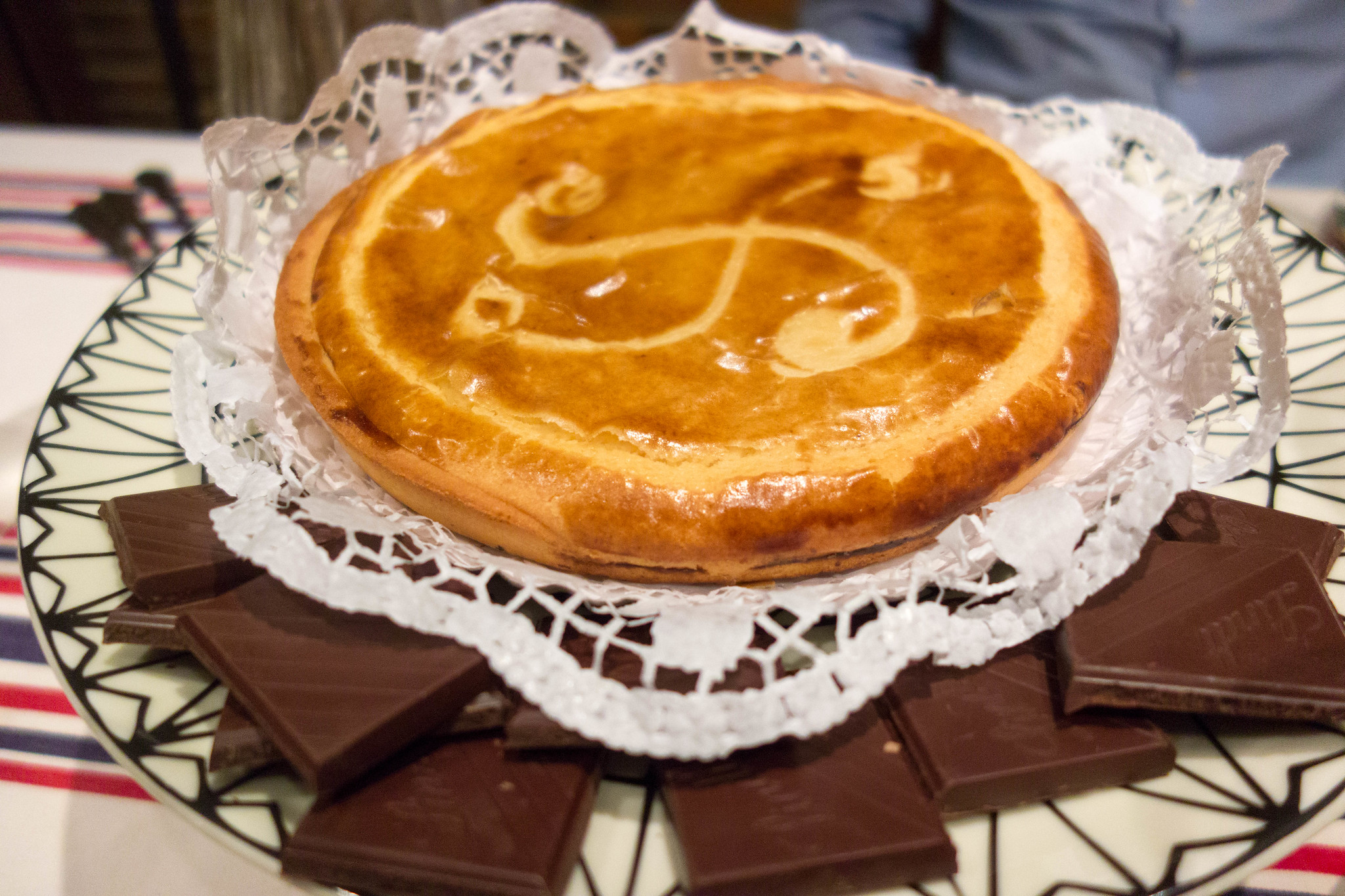 – Using a fork, gently score a lauburu (Basque cross) or diamond pattern on the top for authenticity.