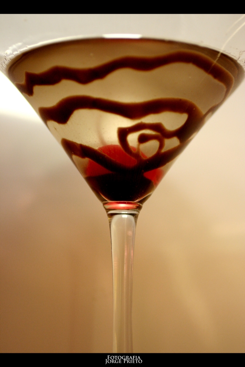 1. Prepare the glass: Drizzle chocolate syrup in a spiral inside a chilled martini glass for a decorative effect. Optionally, rim the edge by dipping it in chocolate syrup then chocolate shavings or cocoa powder mixed with a bit of sugar.