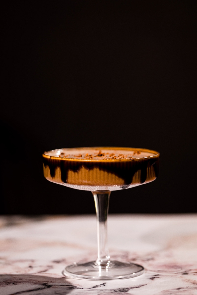 6. Garnish: Float three coffee beans on top. For extra flair, lightly dust with espresso powder or cocoa.